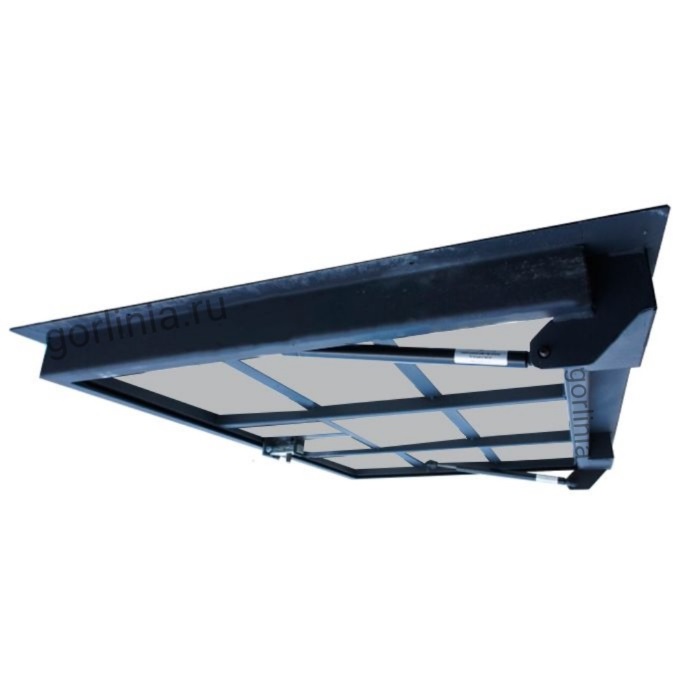 Рама и петлевое соединение из холодного листового проката ХД 3 мм, монтажная глубина 60, вылет в свет в зоне расположения механизма и крепления упоров к коробке 107 мм - см фото в галерее. Каркас полотна с обвязкой сварен из трубы 30х20, зашит плитой ГВЛ под чистовую отделку в уровень монтажной полки короба.