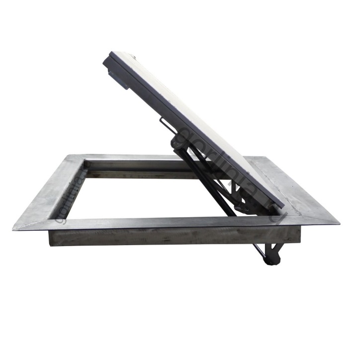 Механизм легко открывается на скрытых шарнирах с помощью газлифтов. В закрытом состоянии конструкцию удерживает замок-защелка с личинкой под четырехгранный ключ.